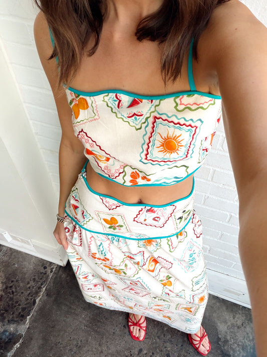 TASHI STAMP PRINT LINEN MIDI SKIRT SET
