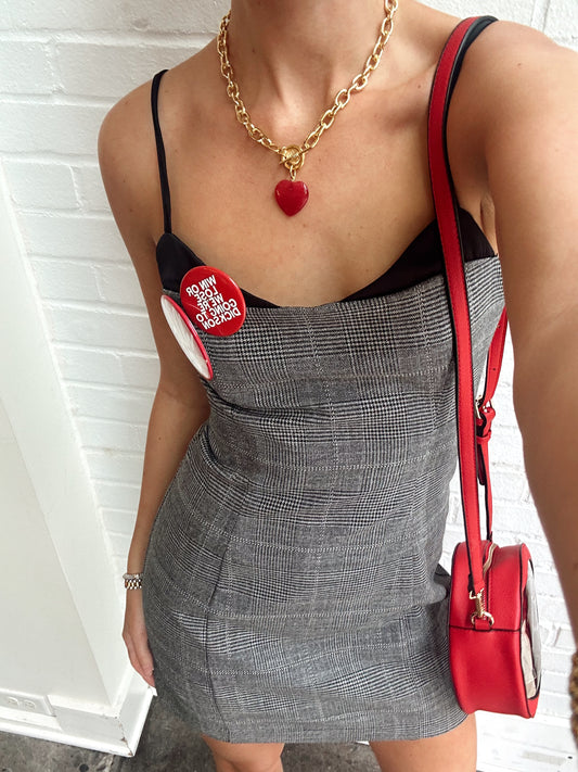 OWEN PLAID SATIN PEEKABOO DRESS