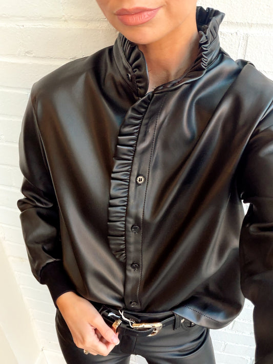 FRONT BUTTON CLOSURE RUFFLE NECK BLOUSE