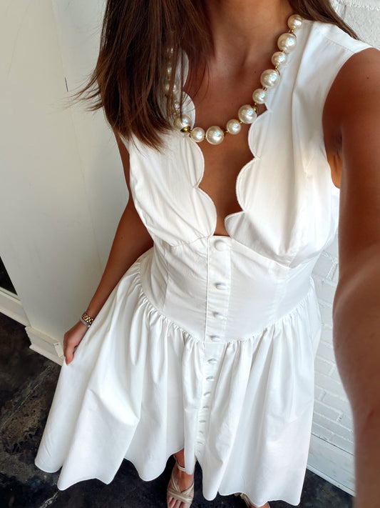 POPLIN SCALLOP NECK SLEEVELESS MIDI