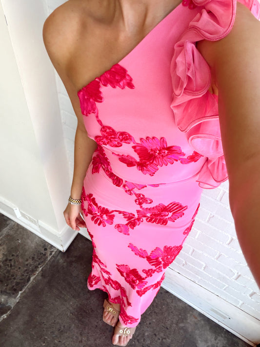 ONE SHOULDER FLORAL MAXI DRESS