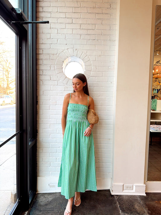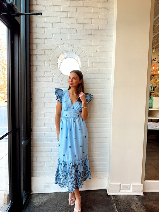 JOLIET STRIPED EYELET ZAYLA MIDI DRESS