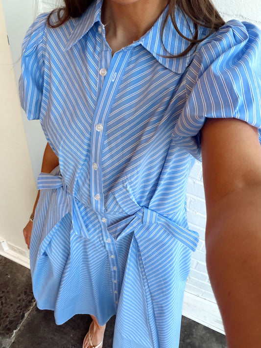 BOW TUCKED STRIPED BUTTON DOWN MIDI