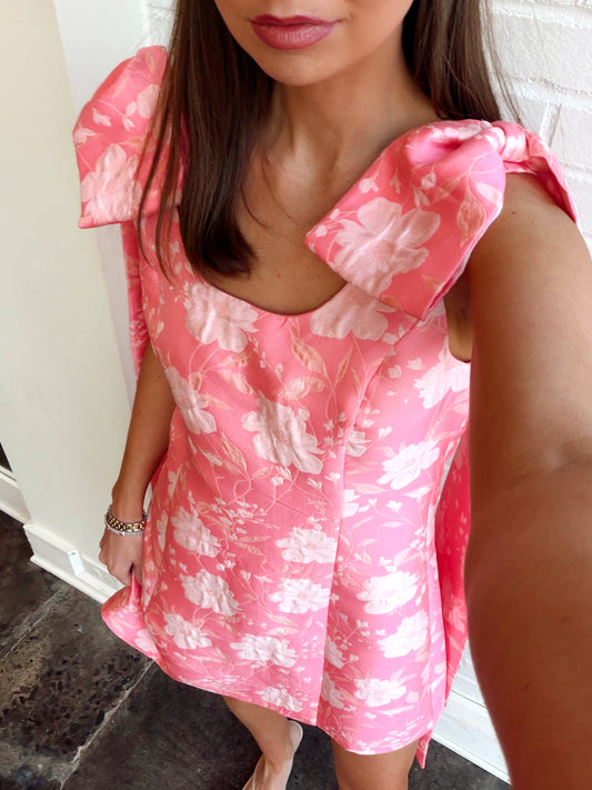 NICOLE JACQUARD BOW SASH MINI DRESS