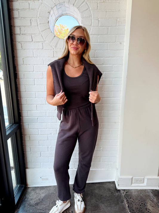 JOSELLE SOFT KNIT SWEATER RIB DRAWSTRING JOGGERS