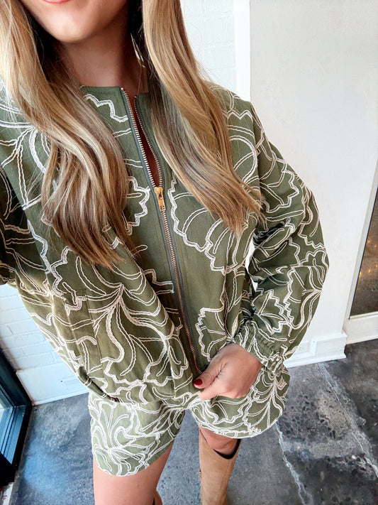 EMBROIDERED BUTTON DOWN SHIRT & SKIRT SET