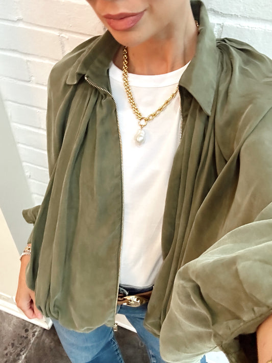 Sold outCOLLARED JACKET W/ PLEATS