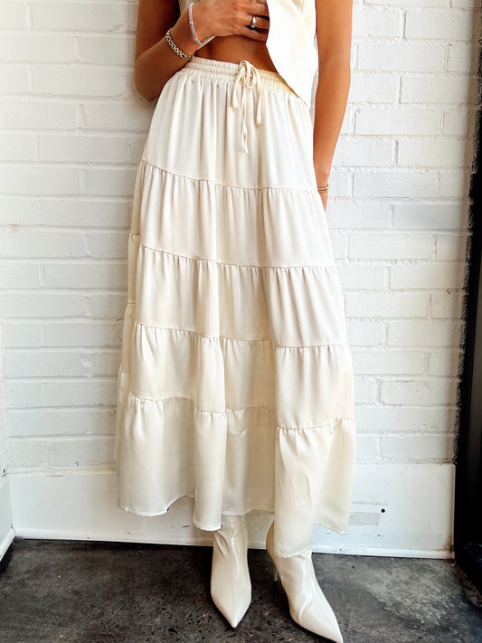 SATIN TIERED MAXI SKIRT