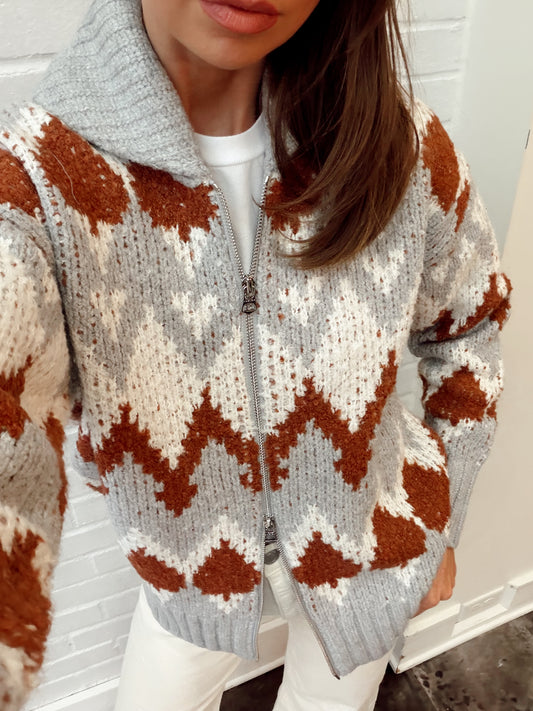 BROCKLEY JACQUARD ZIP-FRONT CARDIGAN