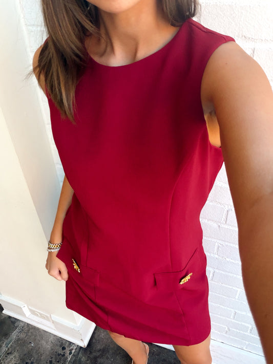 SLEEVELESS GOLD BUTTON DRESS