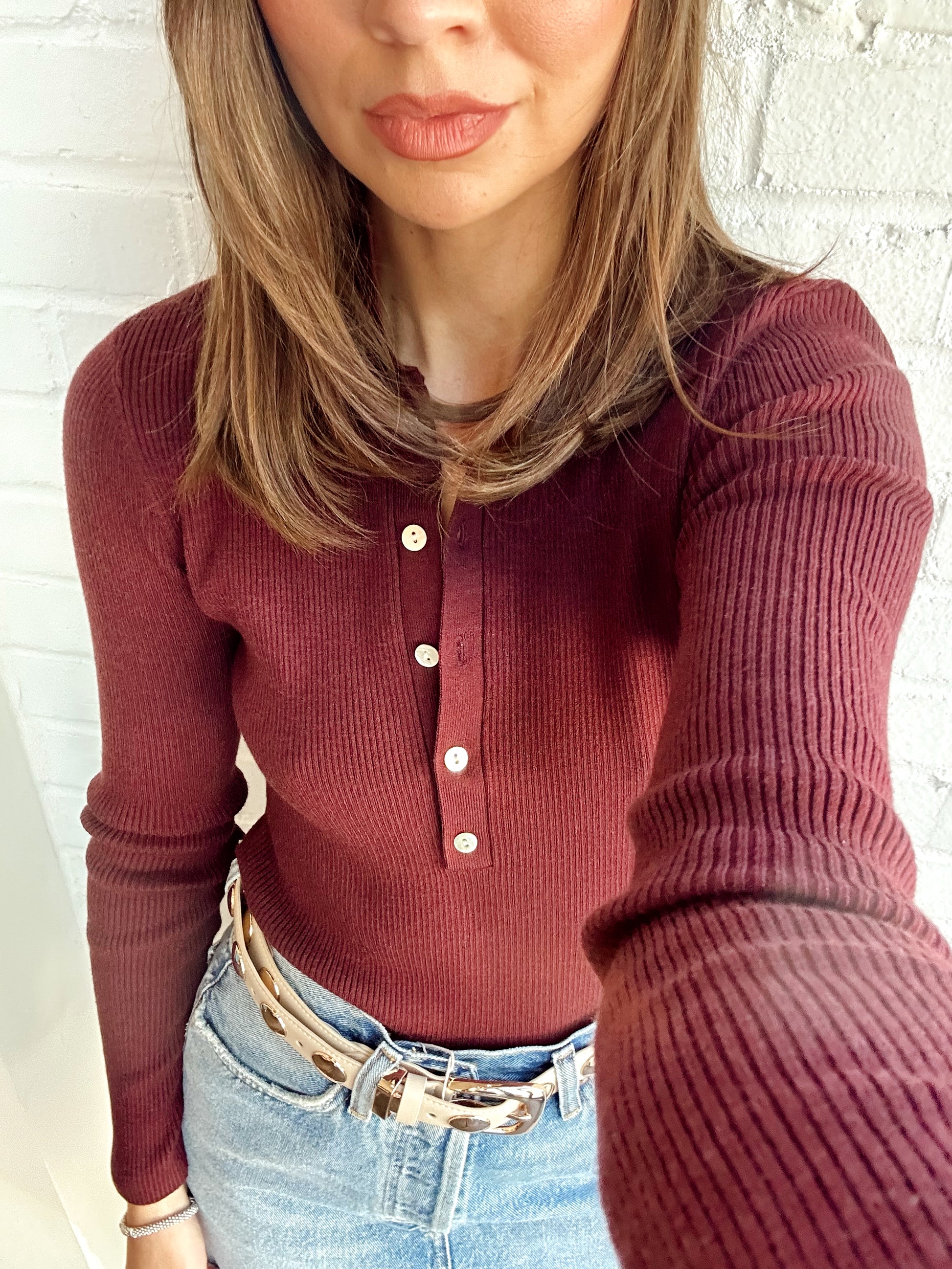 LONG SLEEVE JOHNNY COLLAR SWEATER