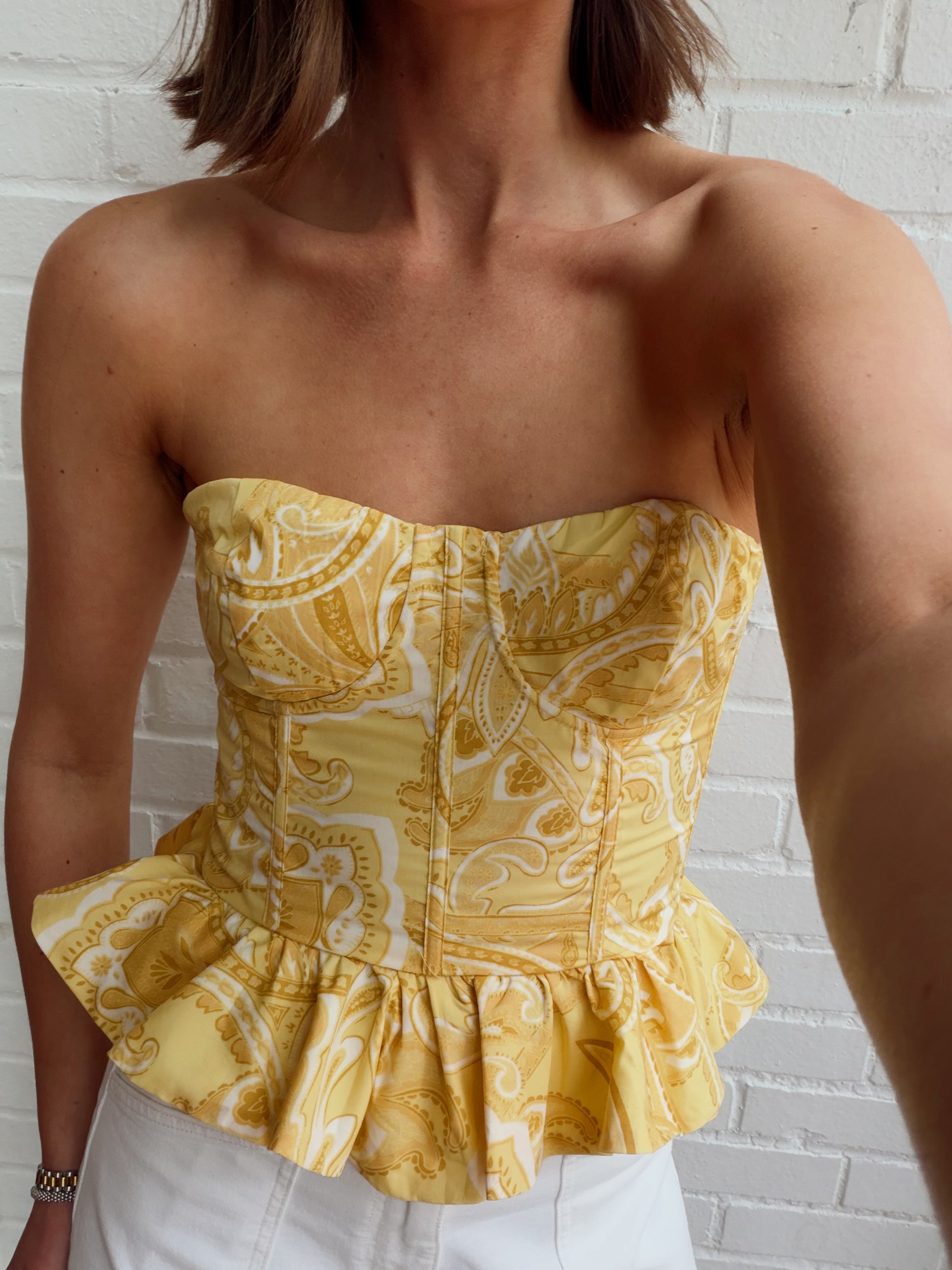 PIPER PRINTED PEPLUM TUBE TOP