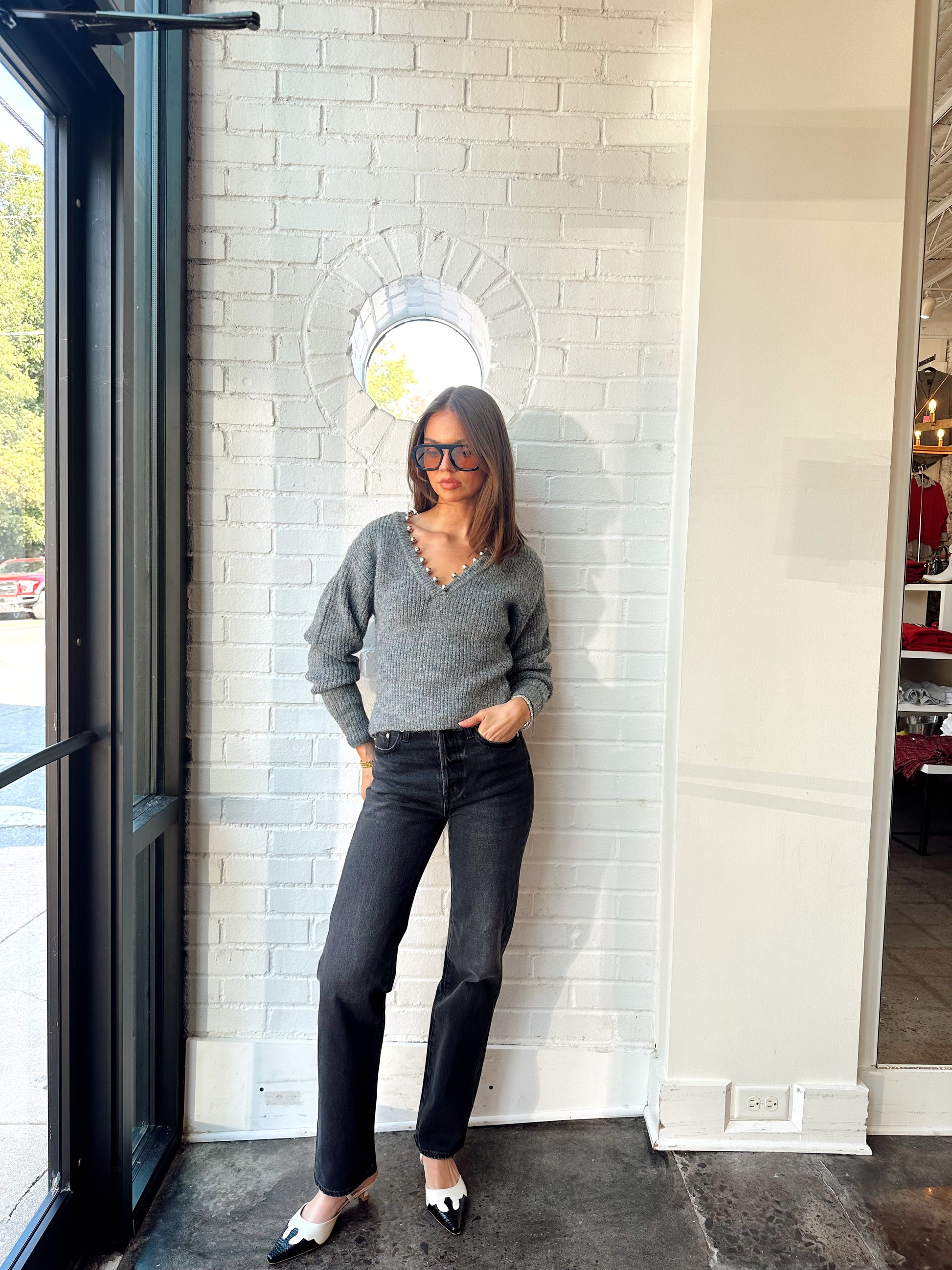 SWEATER W/ SILVER PEARLS