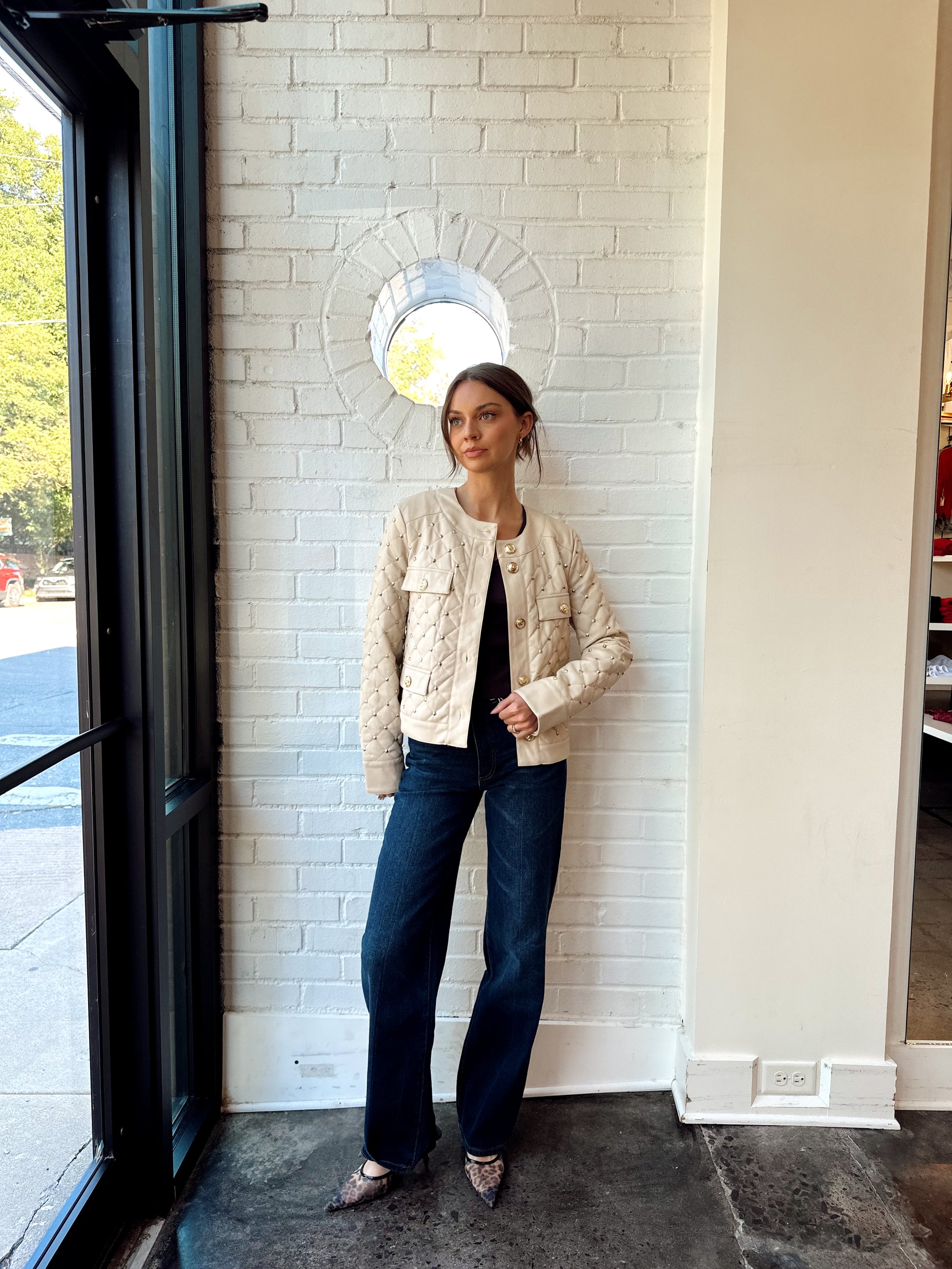 VEGAN LEATHER QUILT JACKET W/ STUDS