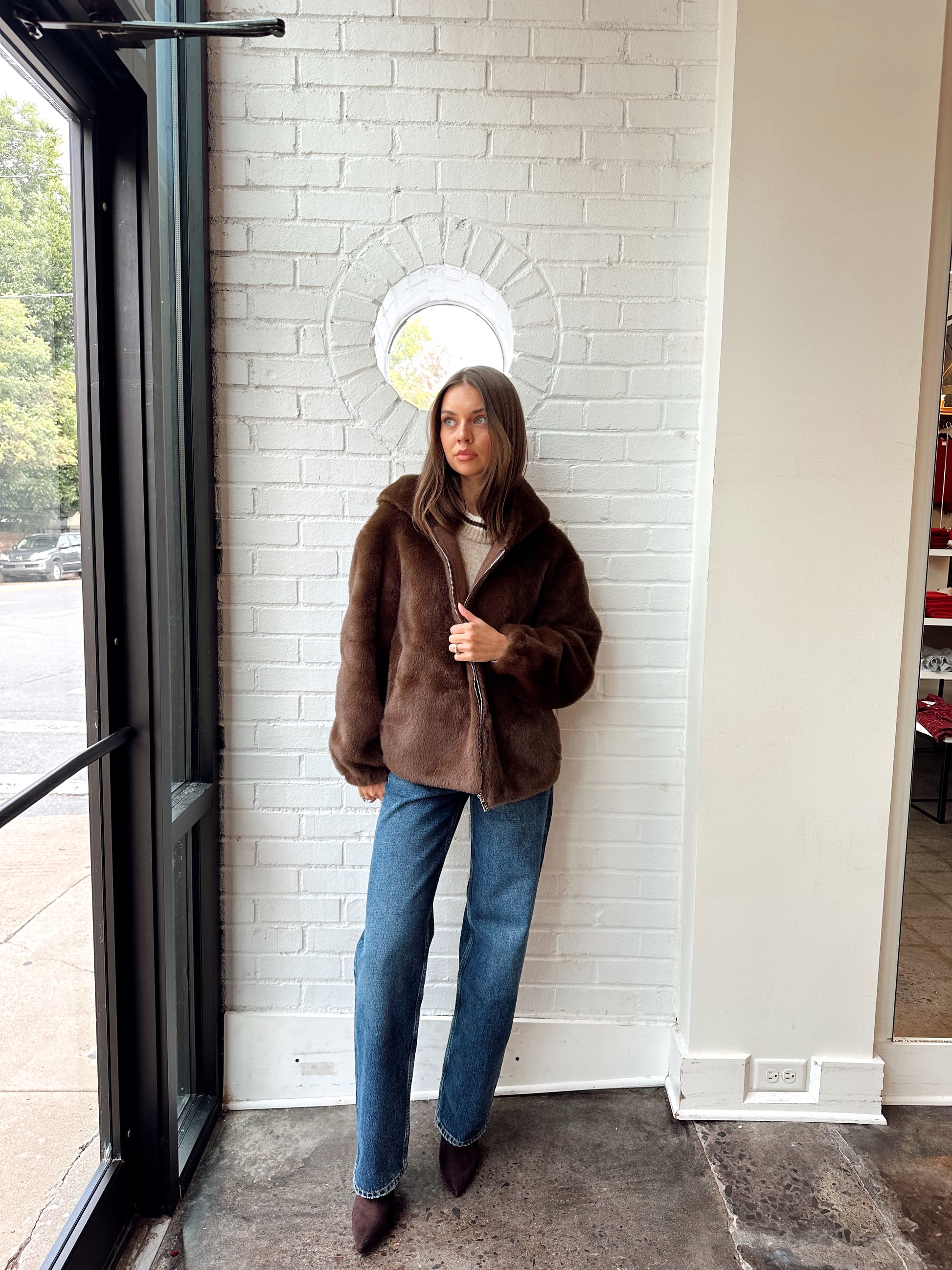COFFEE FUR HOODED JACKET