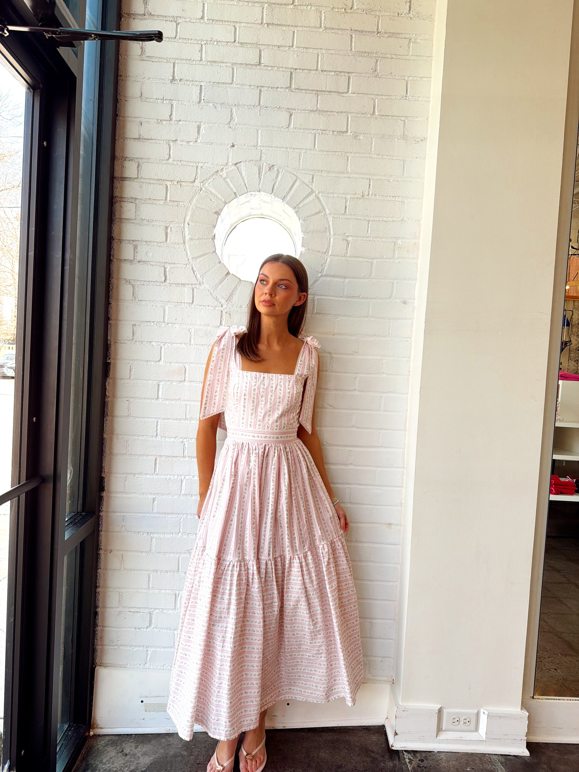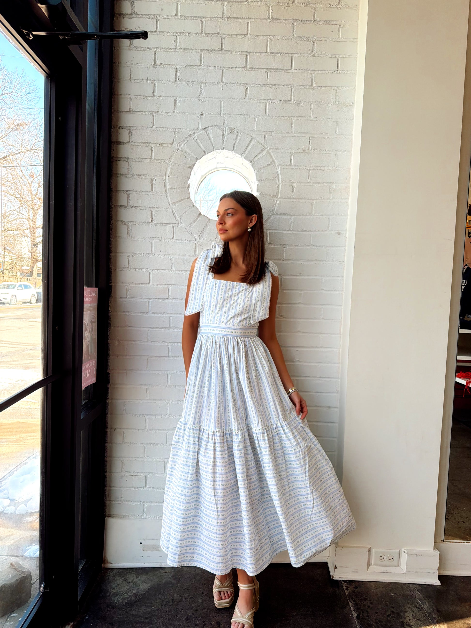 WALLPAPER FLORAL PRINTED TIERED MIDI