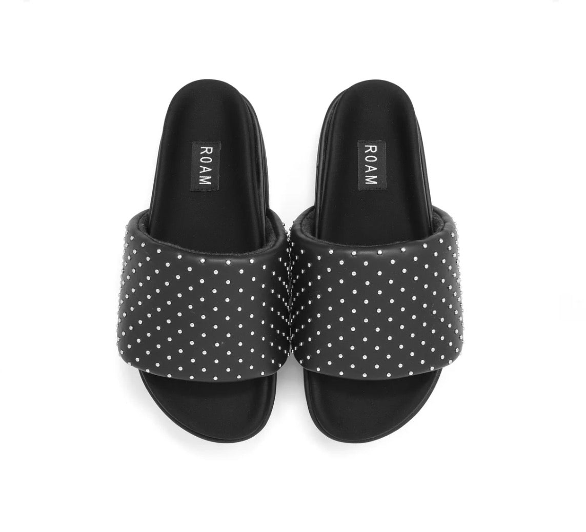 The ‘Studdy Stack’ footbed platform slip-on by ROAM gives effortless polish with soft vegan leather that is punctuate with silver-tone metal studs for an elegantly understated rock-chic aesthetic.